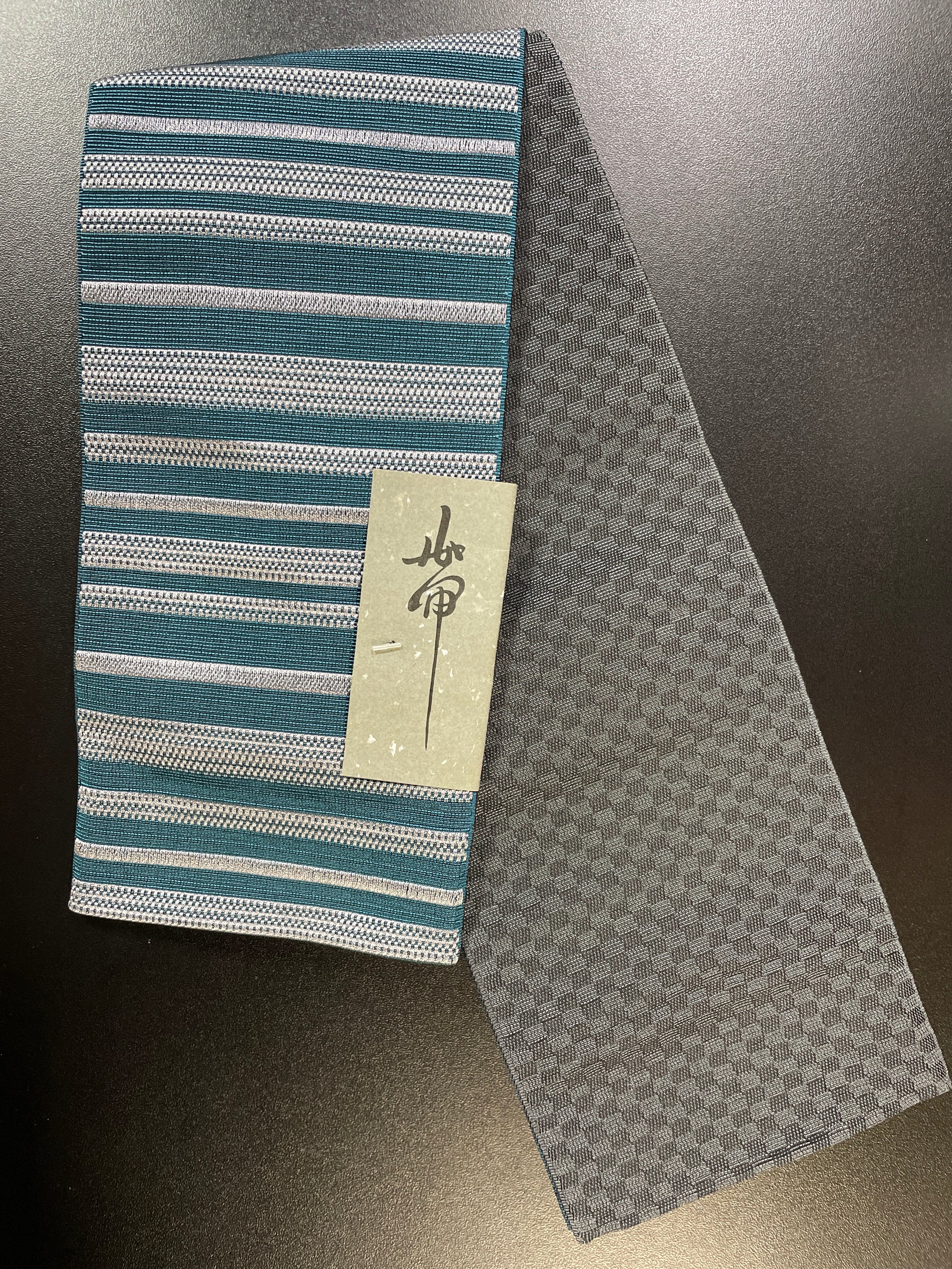 緑の縦じまと裏面の細かな市松模様の両面が渋い一本です。
