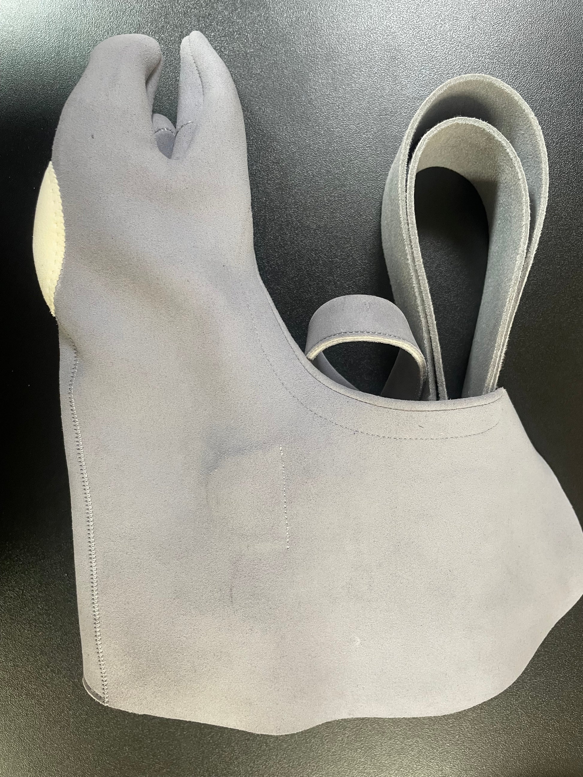 束離、上革、縁灰、本体灰、両面染め、三分縁。