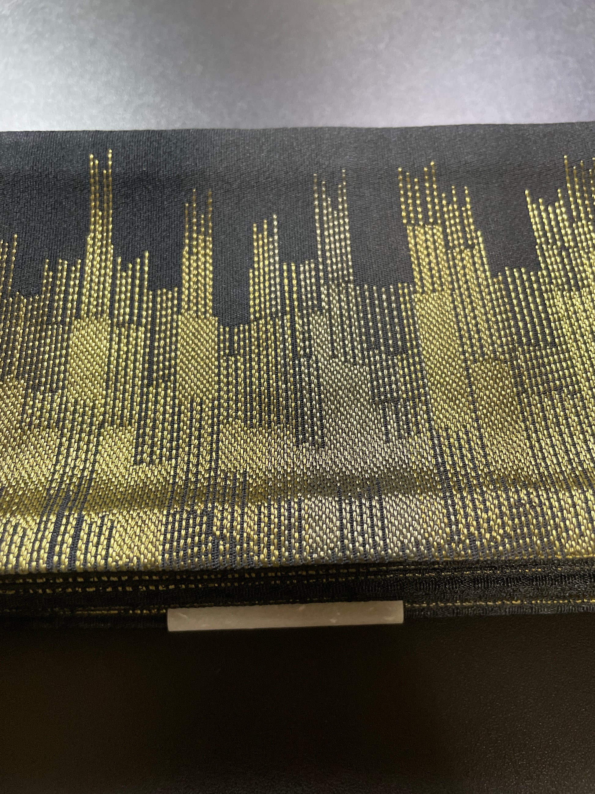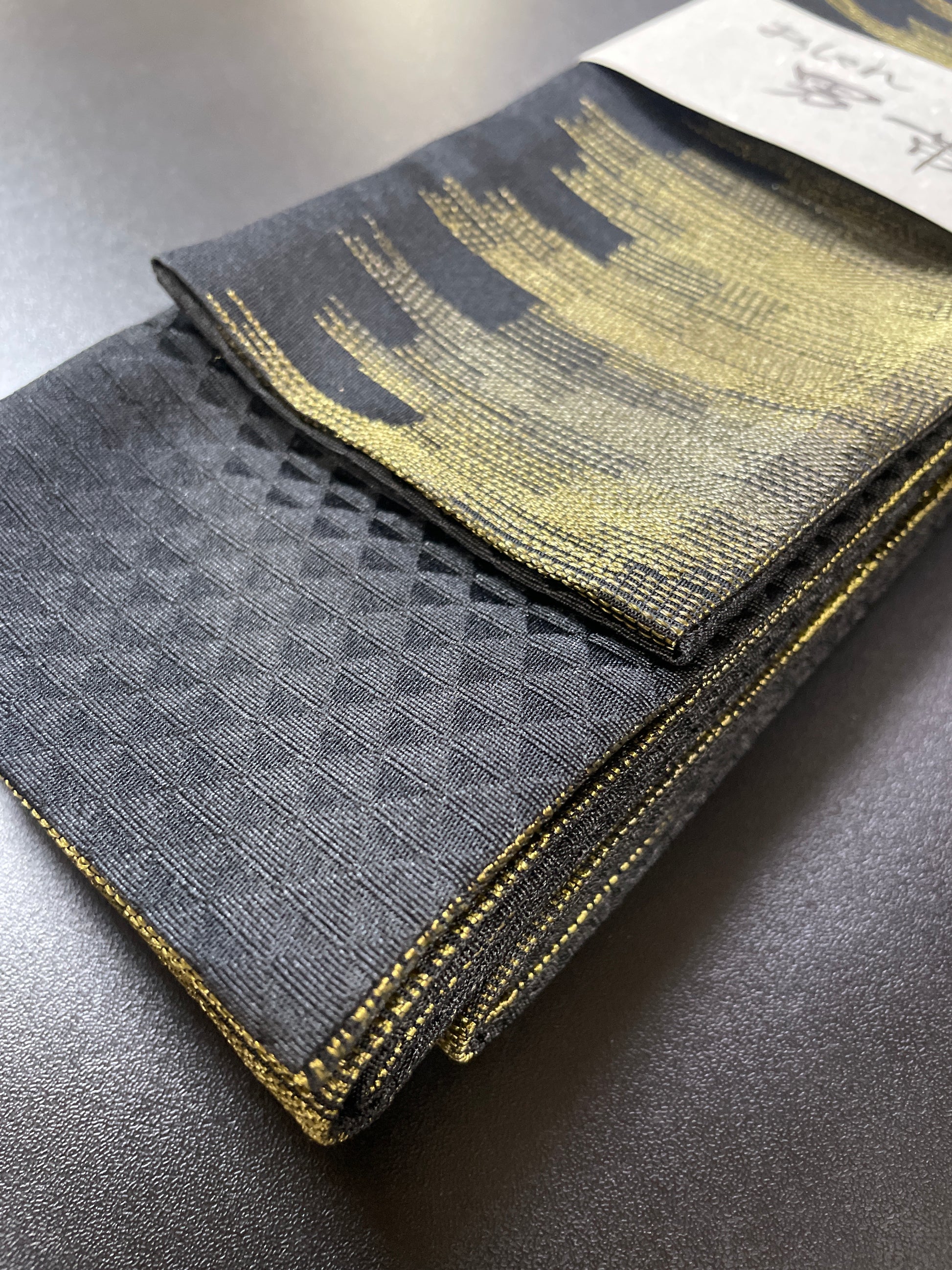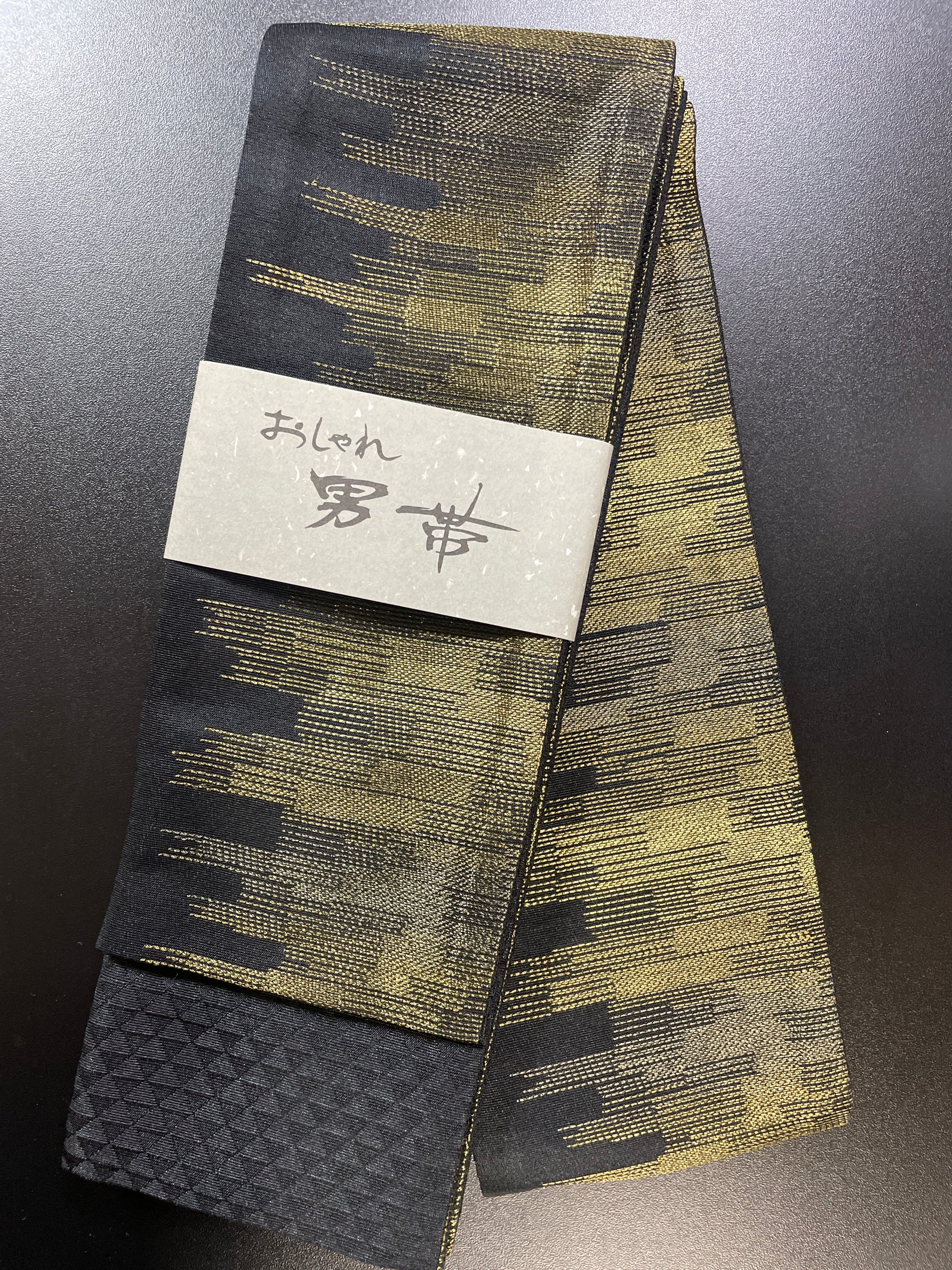 オシャレな男性用帯です。黒地に金糸で彩られた稜線がインパクト大。