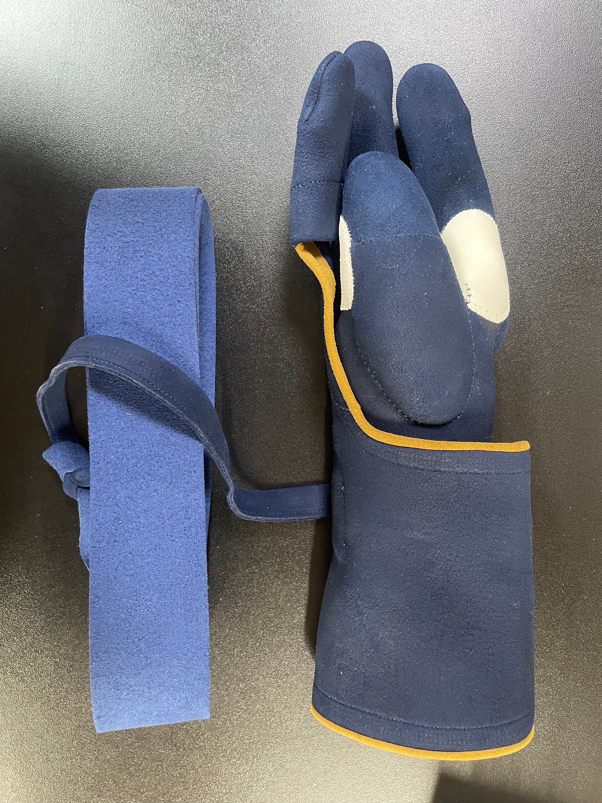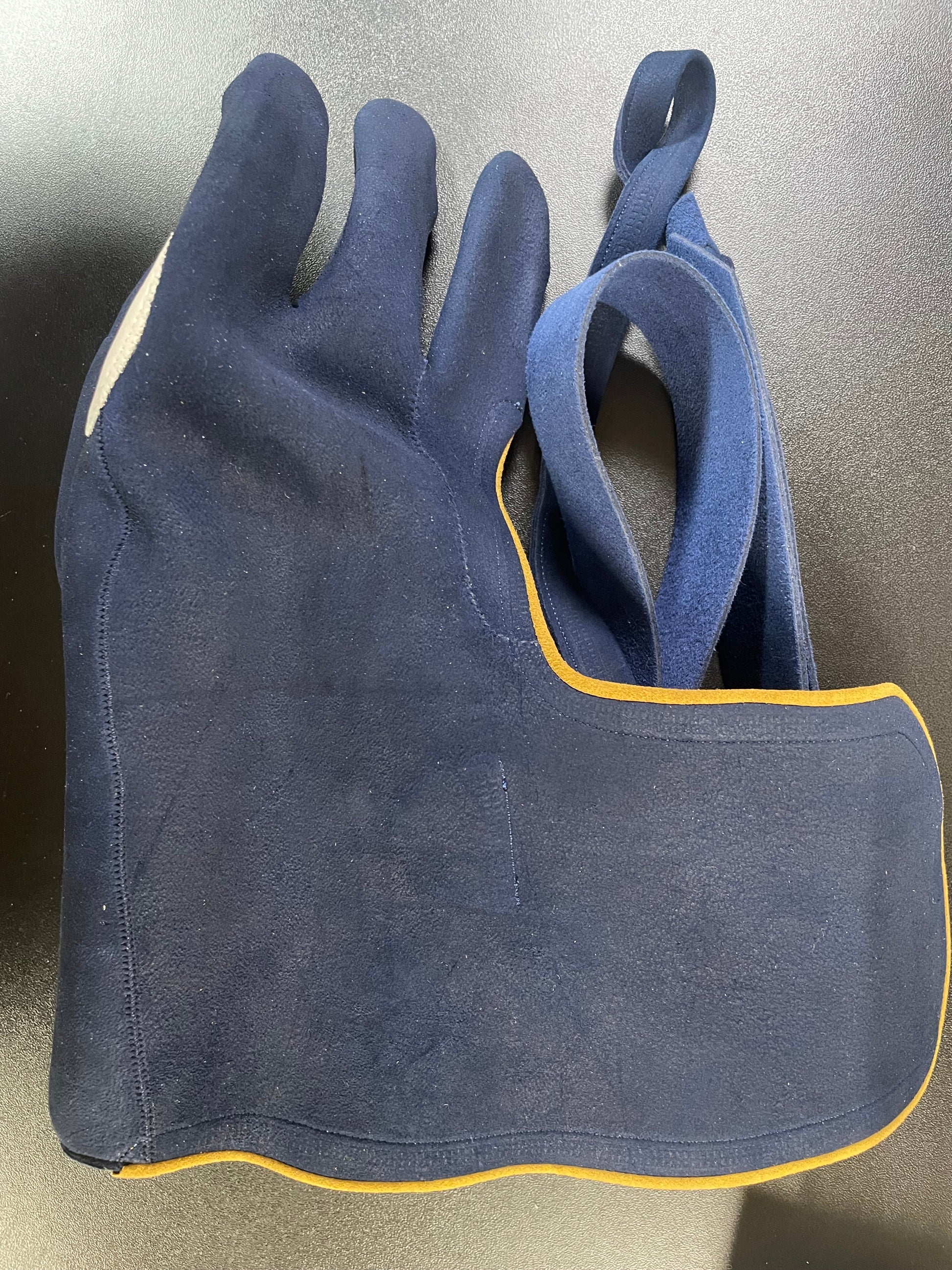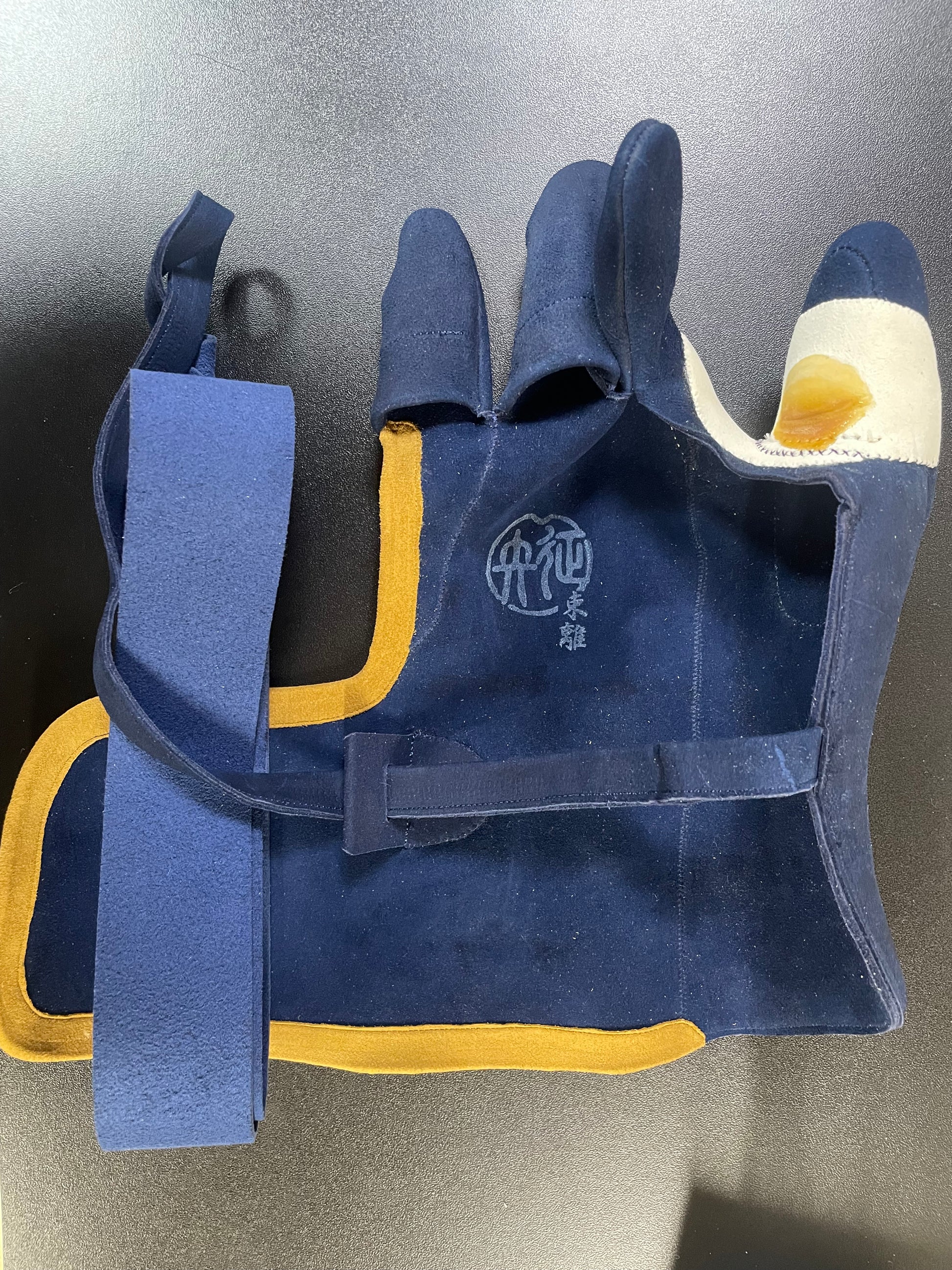 征矢弓具店製の束離、丸染めの紺、四つガケです。