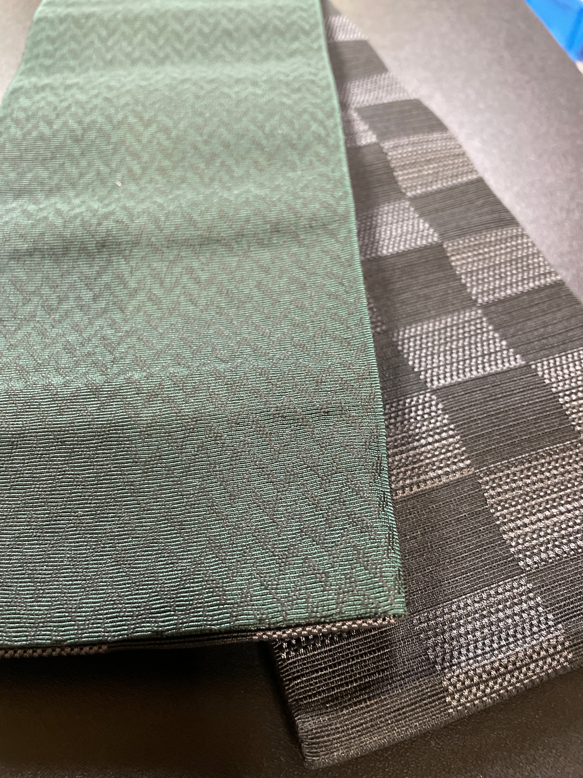 【黒市松×緑鱗】男帯 高品質本袋帯【一点限り】